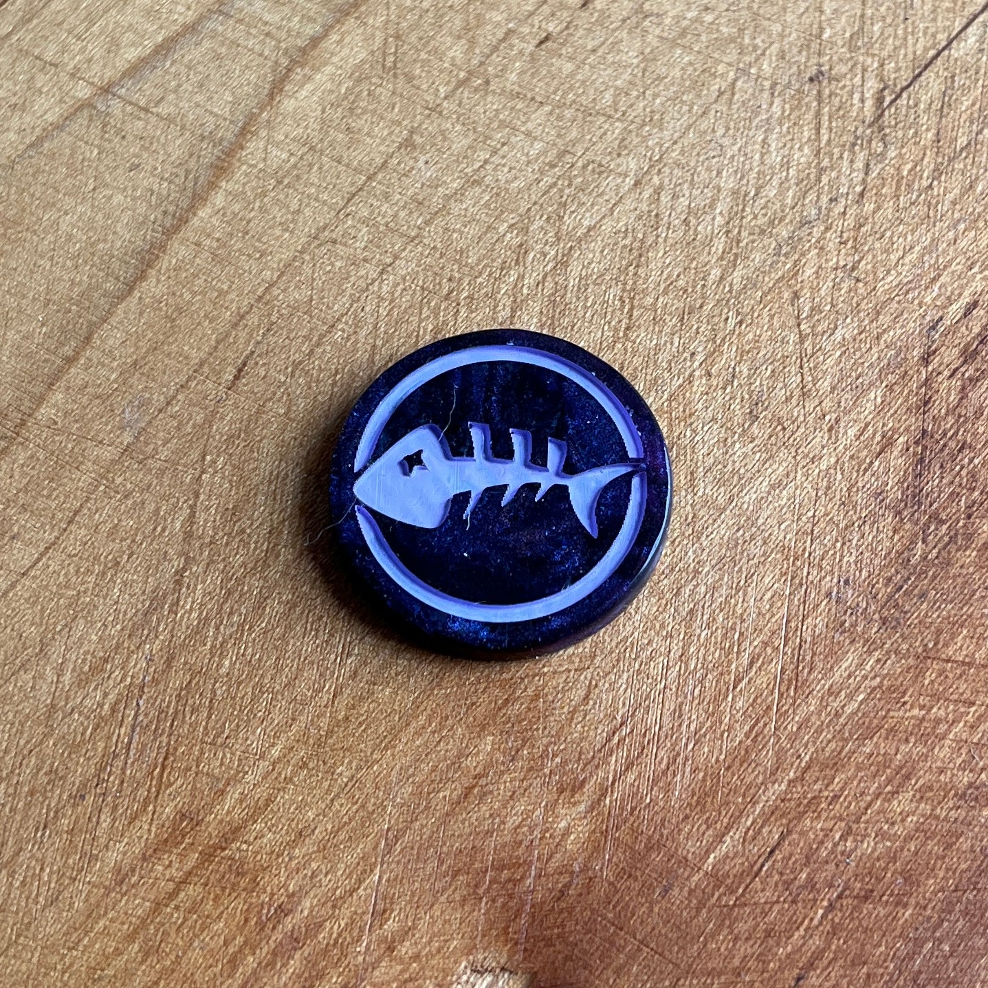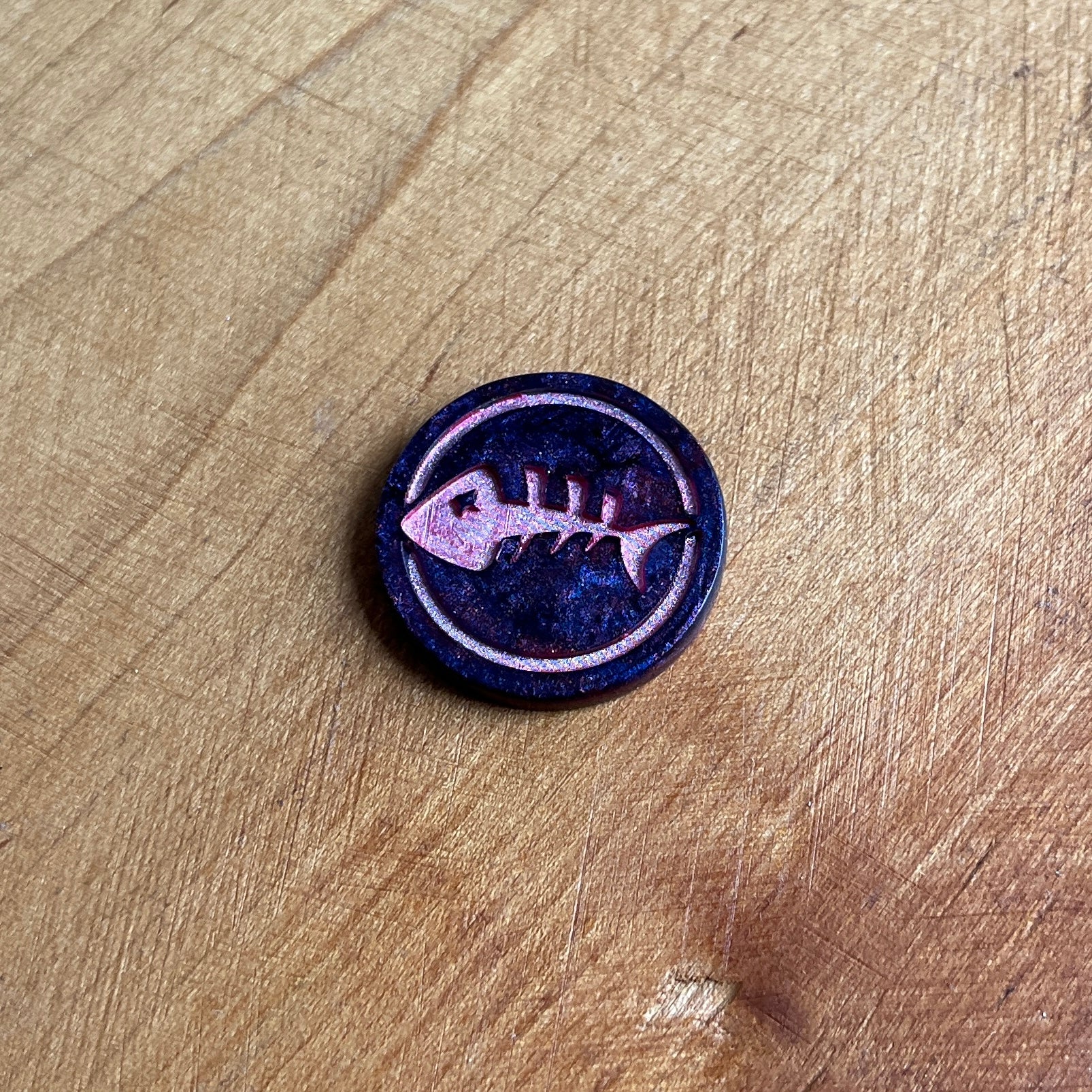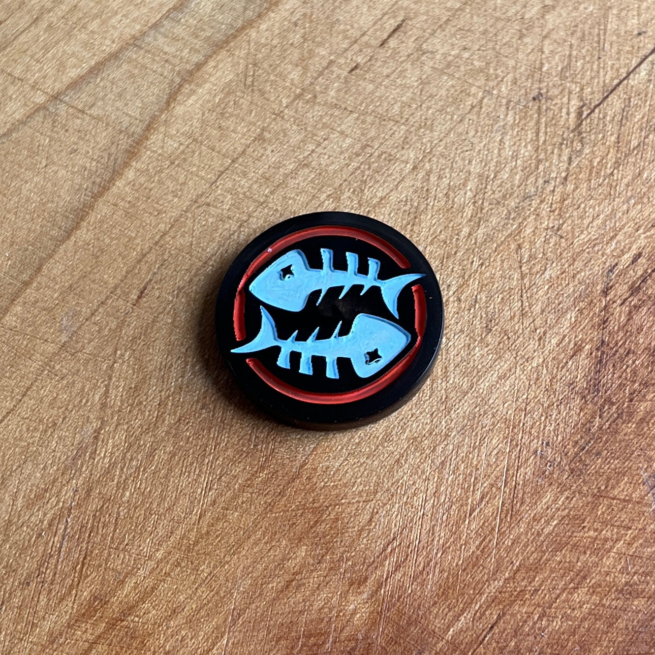 Whether you need to roll a d2 or want a unique decision making aid, these coins are great to hold, fidget, spin, or flip. One side features a single fish skeleton, the other has two fish skeletons.