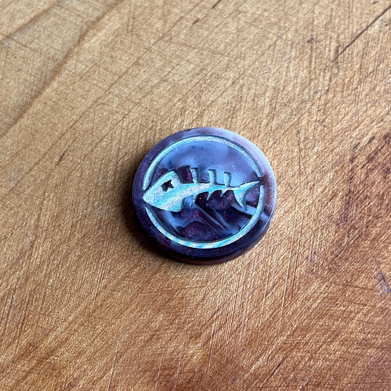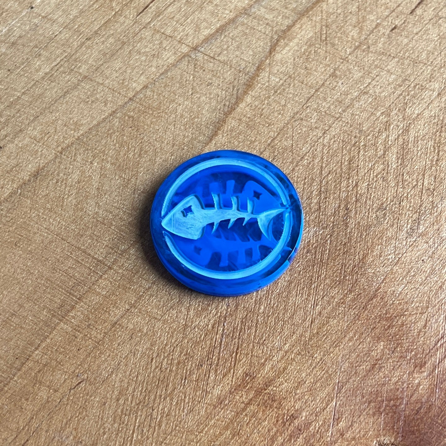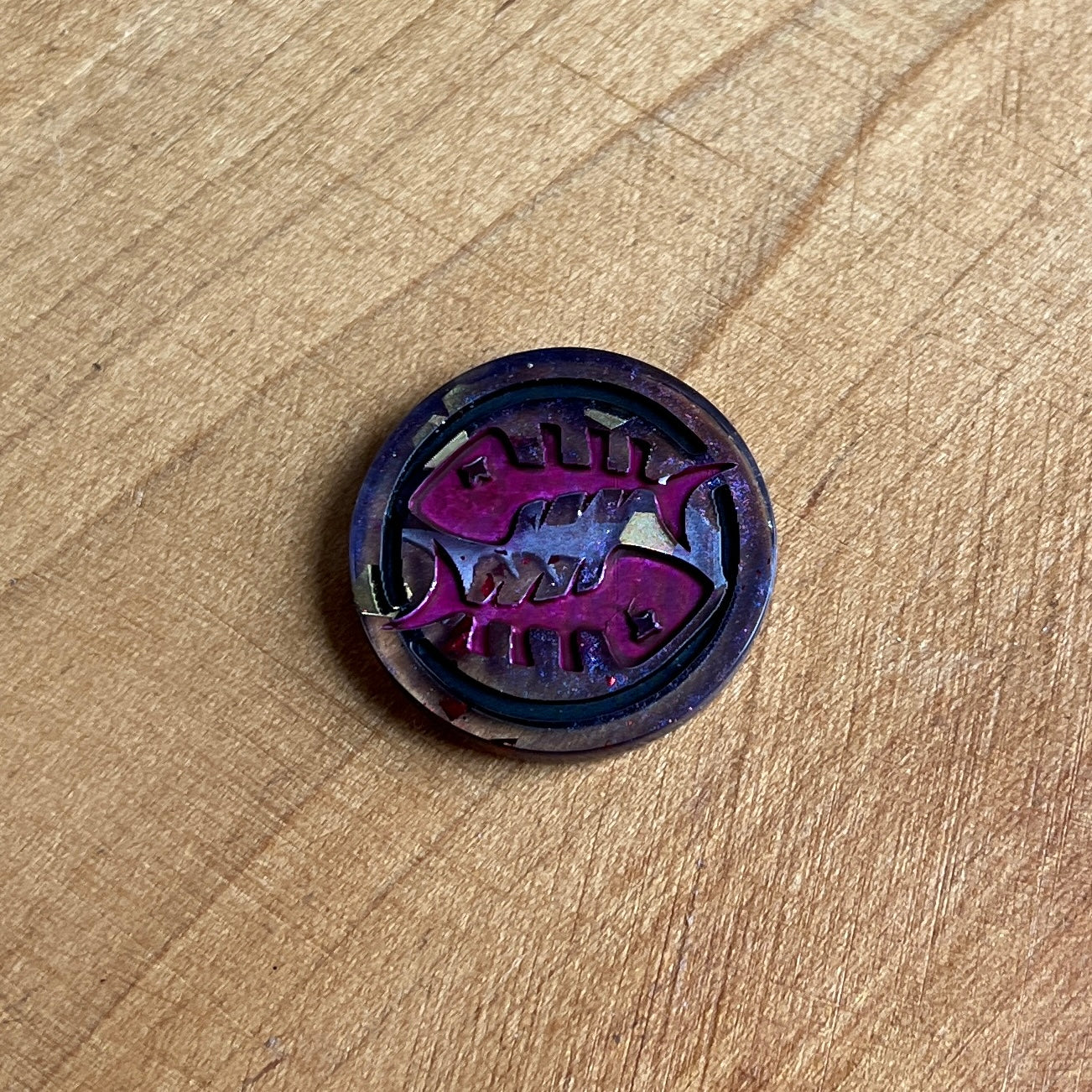 Whether you need to roll a d2 or want a unique decision making aid, these coins are great to hold, fidget, spin, or flip. One side features a single fish skeleton, the other has two fish skeletons.
