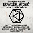 Each die is hand carved from pure gemstone and polished in a proper tumbler. Designs are then engraved into each side and hand painted. Gemstone dice are never guaranteed to have a perfectly balanced weight; however, each of our dice sets are always well weighted and well balanced.